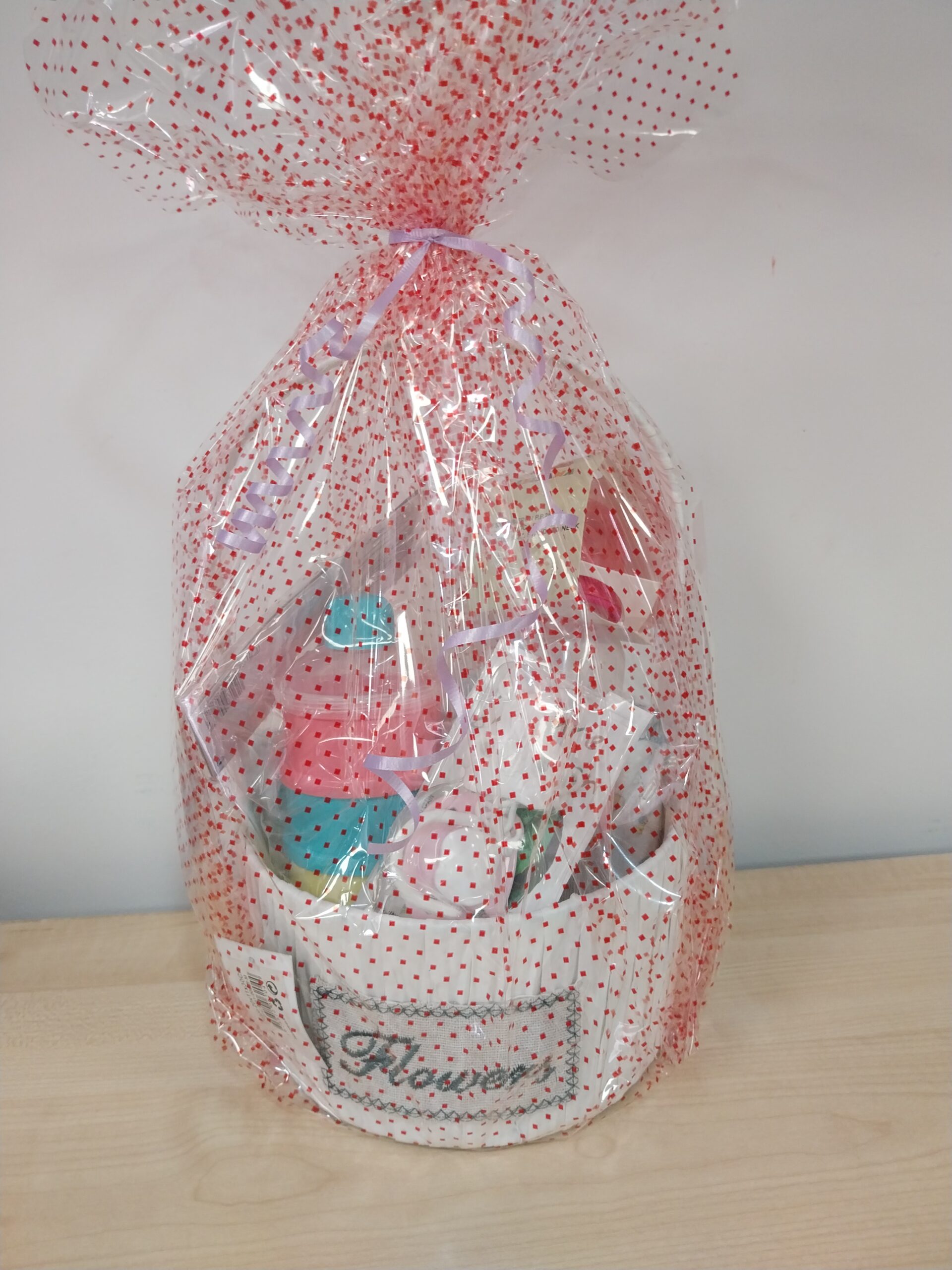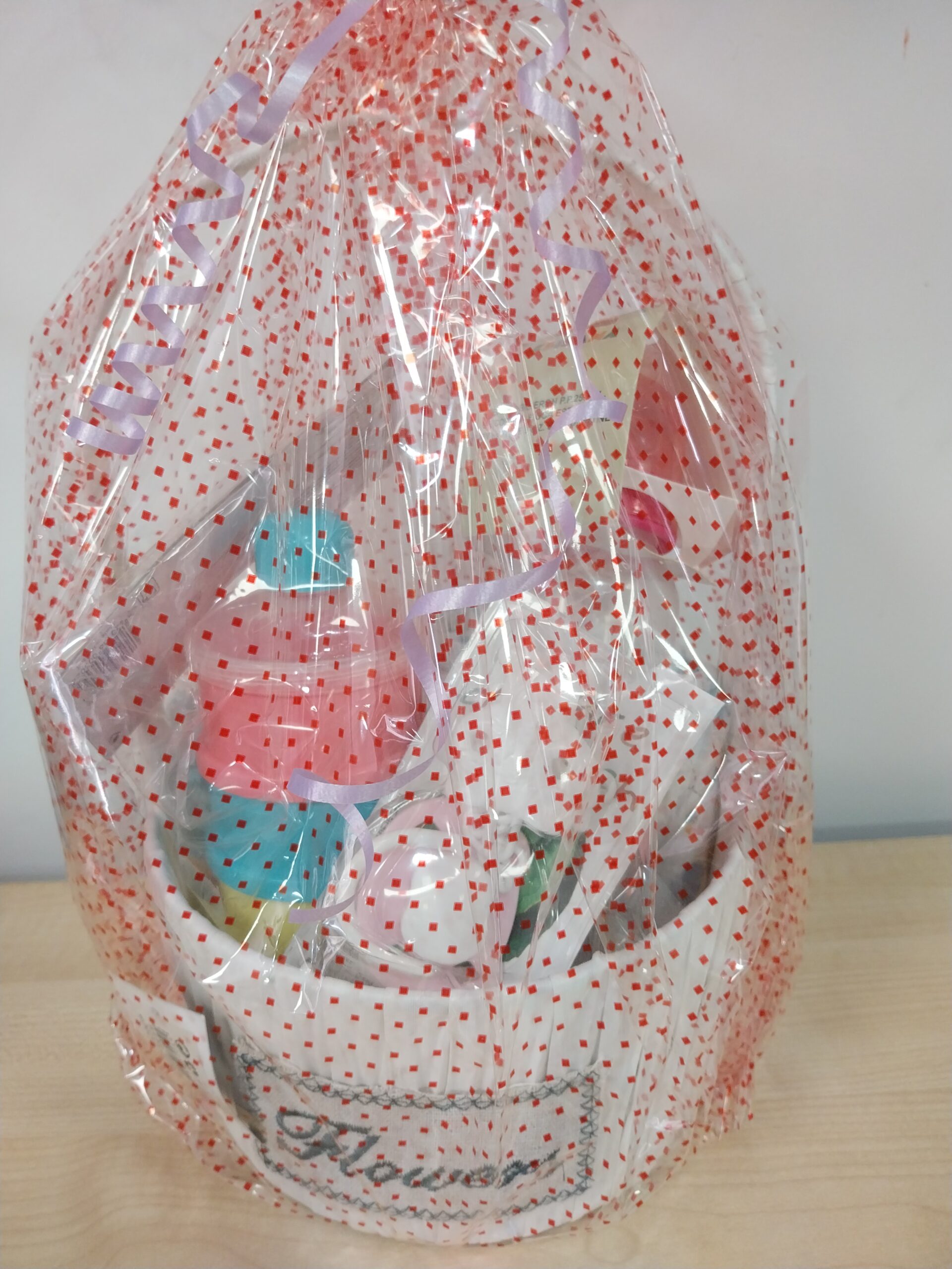 Cesta recién nacido con bibero xupete deposit de leche en polvo pañales..